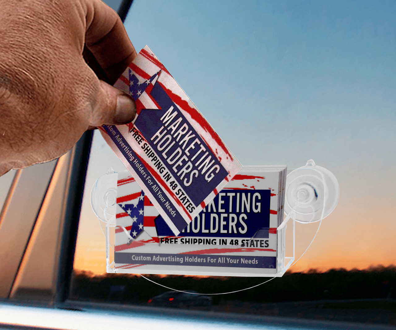 - Includes single pocket business card holder with 2 suction cups