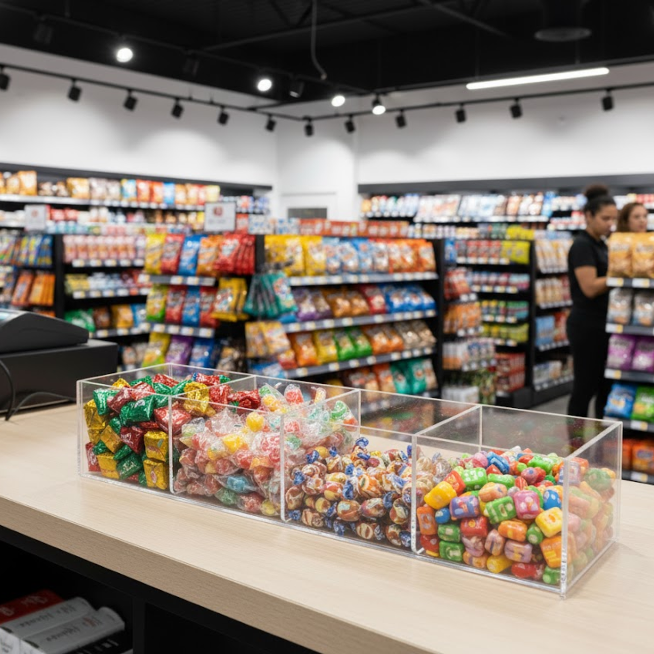 These containers are great for retail locations or convenience stores to present products in an orderly fashion. These dump bins can also be used in candy stores to display bulk candies and other dry goods. Your customers will love the clear view that allows them to see the contents inside and appreciate a neat and clutter free display. This showcase container adds style to any item without taking the attention away from the product. Place one or multiple trays by your front entrance to get customers to purchase new, discounted or impulse items. These compartment caddies are great to help conserve precious table or counter space in your coffee or cocoa bar as well as retail locations.Â
