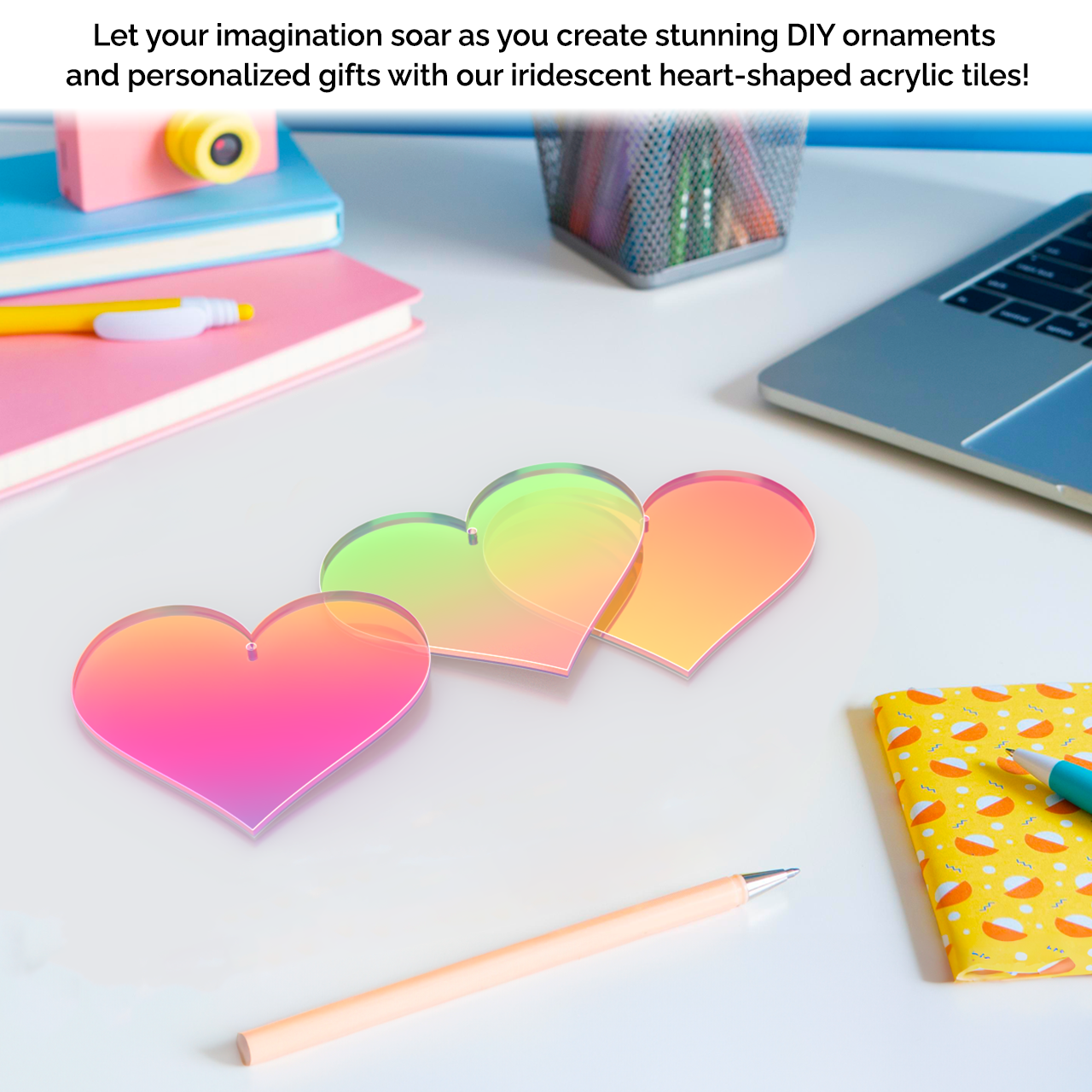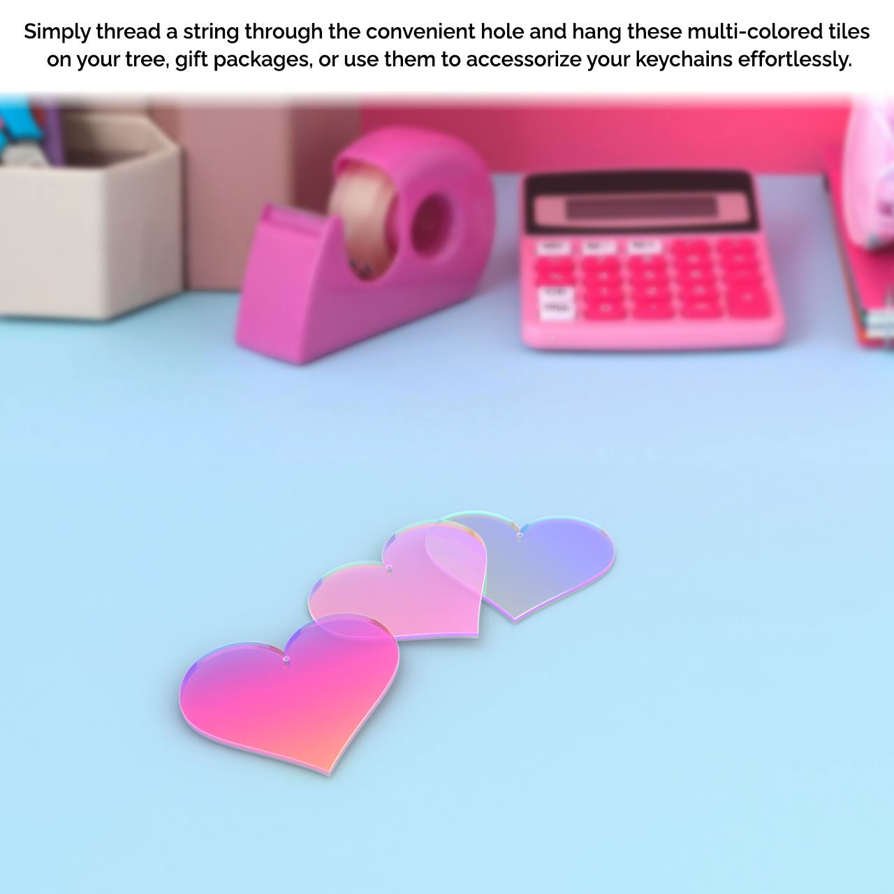 Heart Shaped Iridescent Acrylic Tile with Hole for Crafts and Party Decor