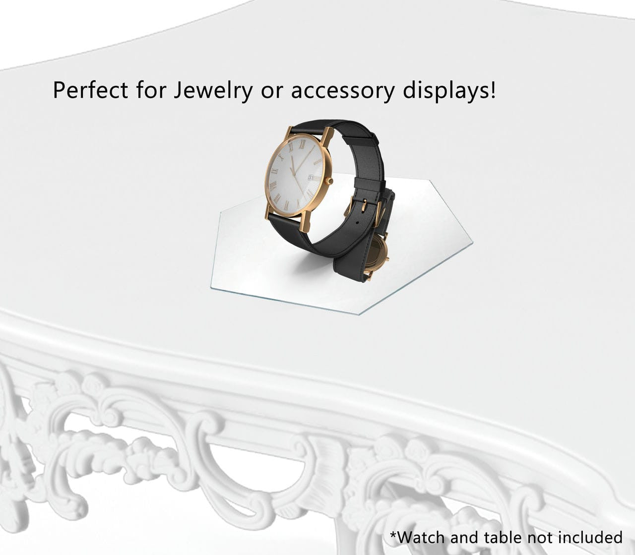 Marketing Holders hexagon tiles are made of durable mirrored acrylic. Use these decorative pieces to create wall art in your home, restaurant, art galleries, gift shops and theaters. These are ideal for decorating different areas like sofa walls, doors, and nurseries, add style to any bathroom, bedroom or office. These mirrors are designed to be both functional and aesthetically pleasing, adding an elegant and contemporary touch to interior spaces.