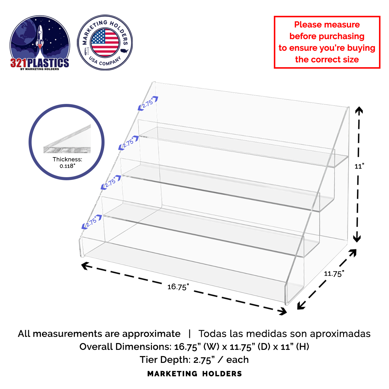 - Tier Depth: 2.75"D