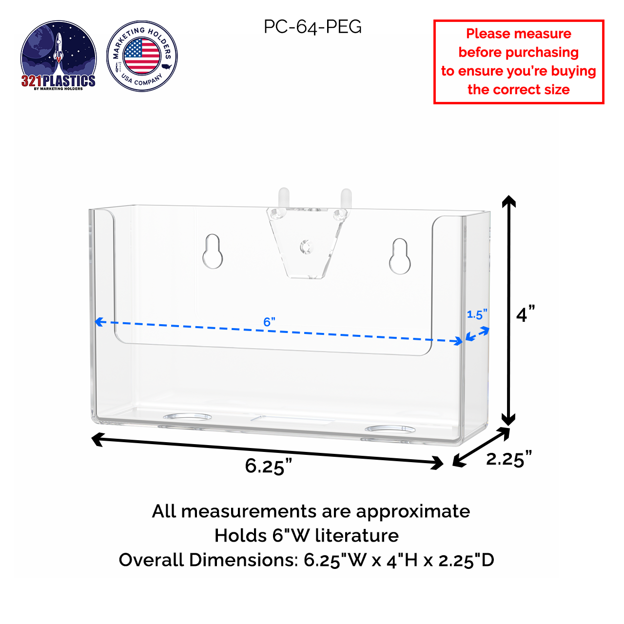 Marketing Holders literature holder provides a simple yet effective pegboard display for promotional literature, pamphlets, brochures, booklets and flyers. With this clear holder, your office or store wall board becomes an advertising tool! Many businesses find these marketing aids useful to spread the word about their upcoming promotions, products, services and events. Elegantly showcase attraction pamphlets or menus while saving space and keeping areas looking professional, clutter free and organized.
