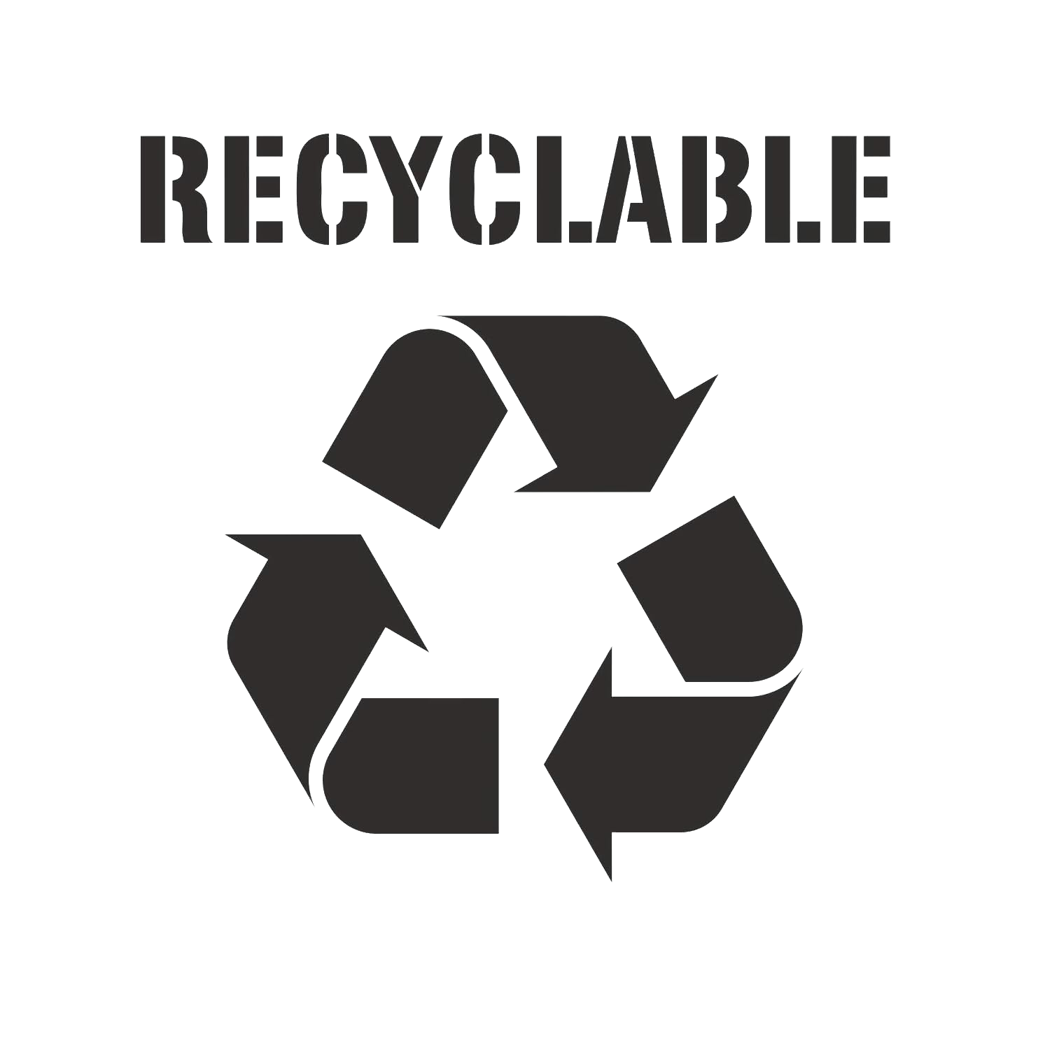 This stencil carries the empowering message of recyclable in a design that's both visually engaging and purpose-driven. The bold, clear typography showcases the word in a way that commands attention, emphasizing the importance of recycling in a clean and impactful manner.