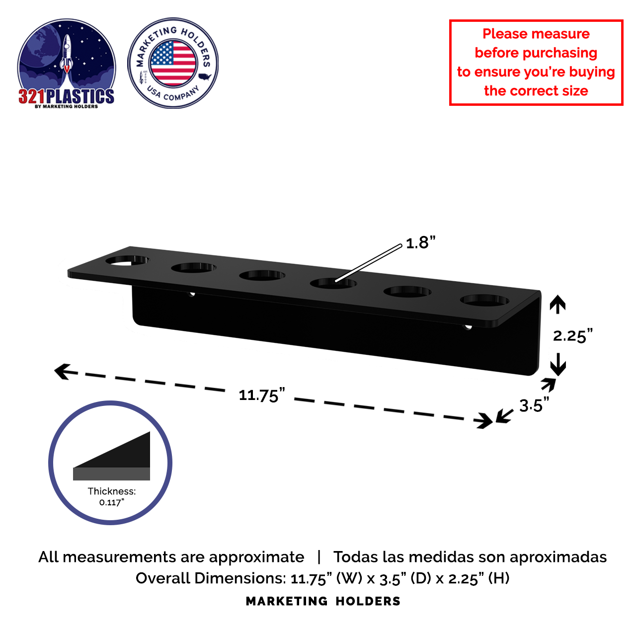- Thickness: 3/16", .117" or 4.5MM