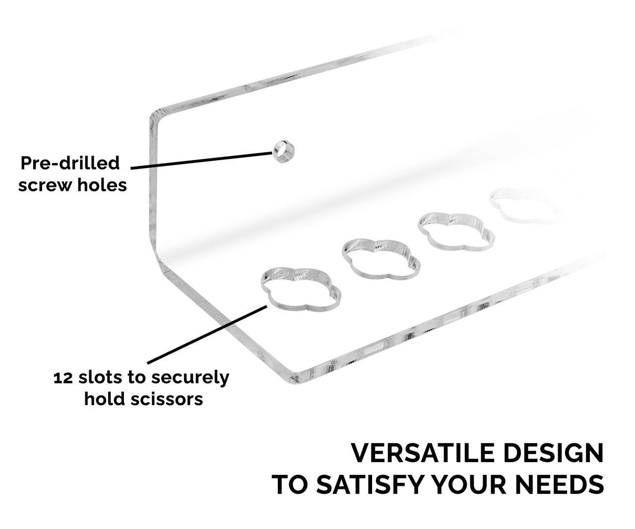 Barbers, salons and groomers can use the acrylic holder to keep their shears, scissors and other grooming tools organized, out of the way and easy to grab during busy days. Keep it close by mounted on walls near your styling station so you can easily switch from your thinners to your basic shears.Â