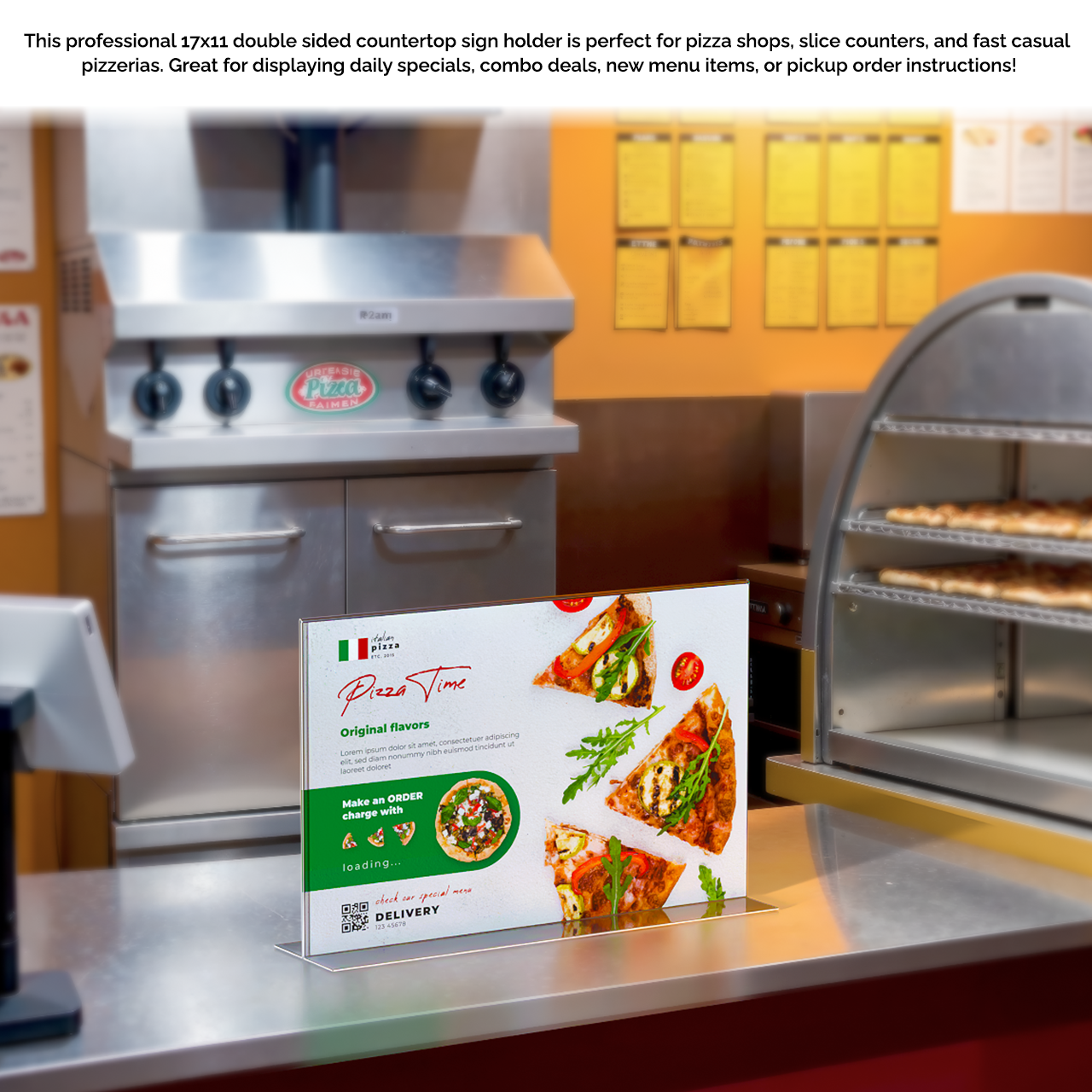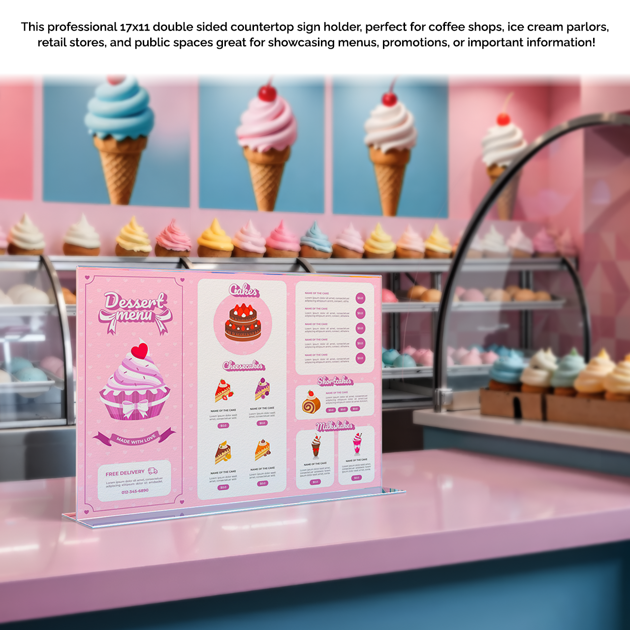 - Perfect countertop display frame for advertisements, menus, pricing, POP signs and more.
