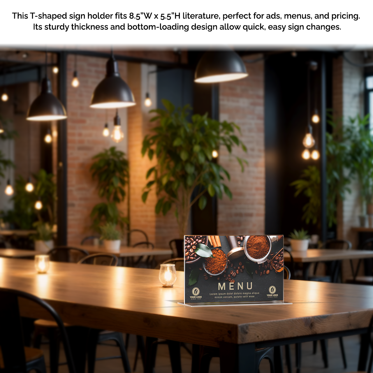 Sign Holder 8.5"W x 5.5"H Double Sided Bottom Load Table Tent