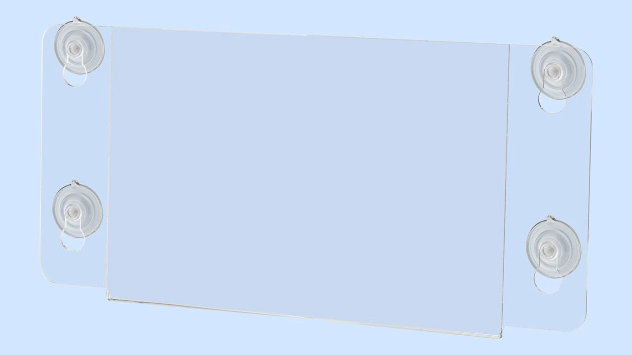 The suction cup sign holders are a more professional option to taped notices that lose their stick over time and leave a messy residue on glass walls, doors and windows when the event is over. Made of top quality acrylic, this clear sign holder has a high durability and great resistance. It has smooth edges and is transparent, protecting retail signage from dirt so that the text or image wouldn't be damaged but clear and readable.
