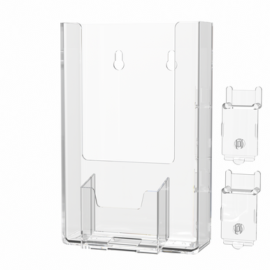 In addition to brochures, the acrylic caddy has a business card pocket that can also be used to display other small media like Security Gate Code Cards, Membership Cards, Appointment Cards, VIP Cards, ID Badges, Security Cards or Gift Cards.