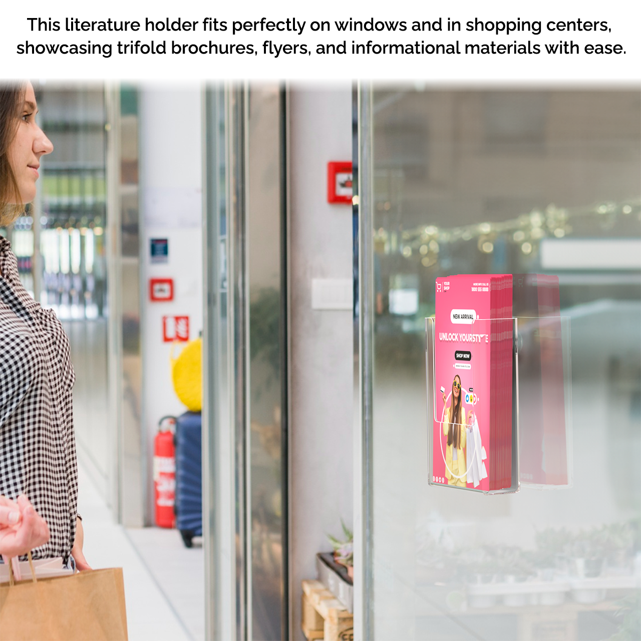 Suction Cup 4"W Trifold Brochure Holder Window Mount
