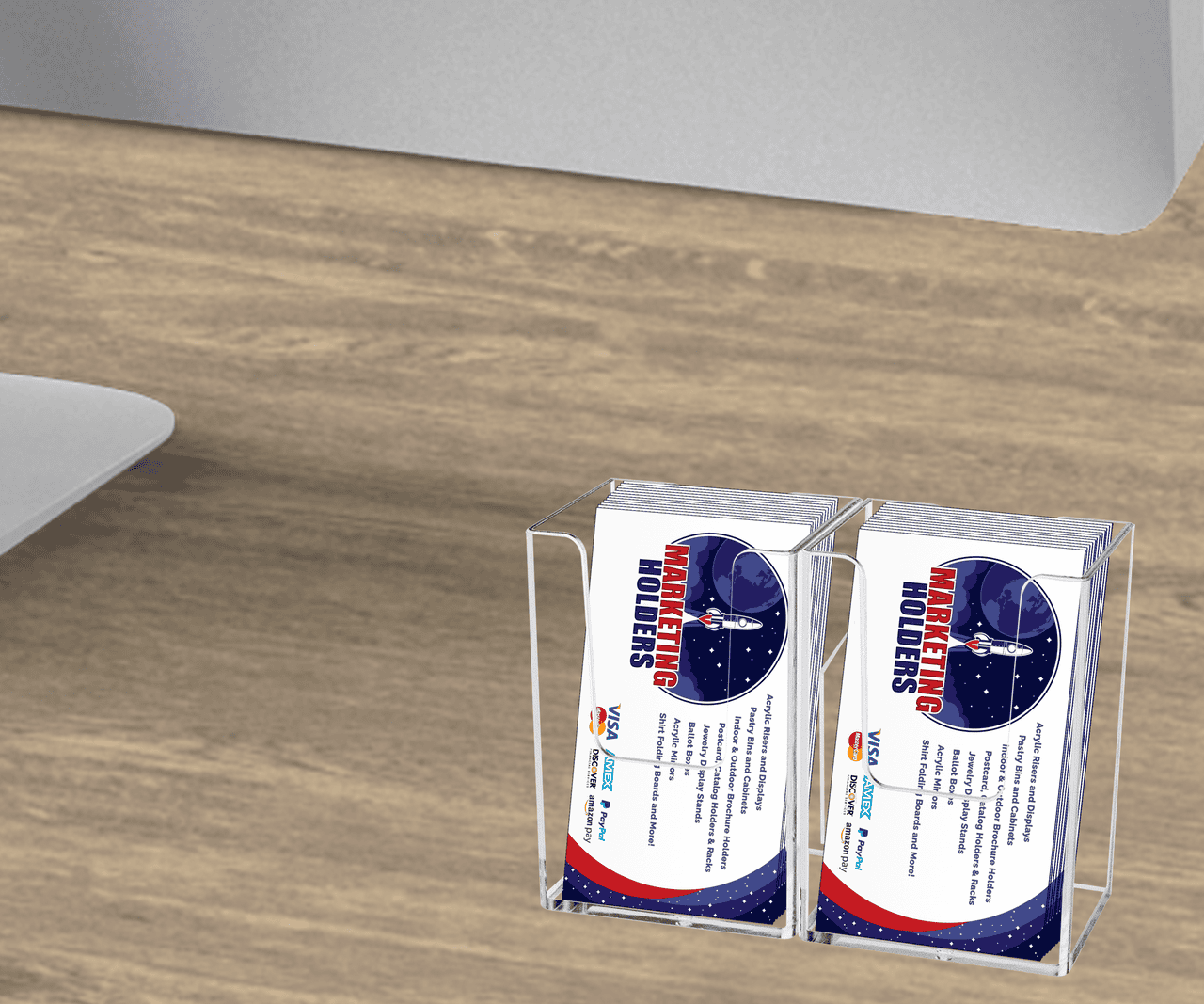 - Perfect display solution for vertically designed business cards, gift cards, and appointment cards