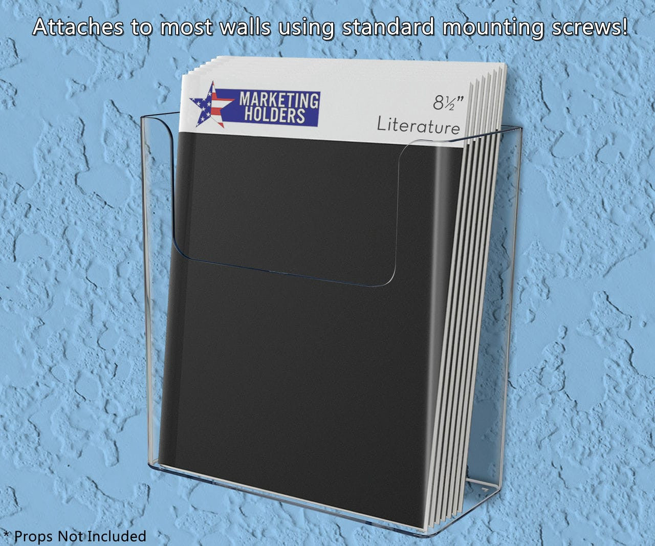Marketing Holders versatile holder provides a simple yet effective tabletop or hanging display for 8.5”W promotional literature, catalogs, magazines and flyers. Many businesses find these marketing aids useful to spread the word about their upcoming promotions, products, services and events. These heavy duty catalog stands can be used on flat surfaces such as tops of a table, counter or desk near entrances and exits or reception areas so customers are prompted to take one when visiting your business. This literature holder comes with 2 pre-drilled keyholes and is designed to easily hang on smooth surfaces if counter space is limited. Elegantly showcase flyers or magazines while saving space and keeping areas looking professional, clutter free and organized.