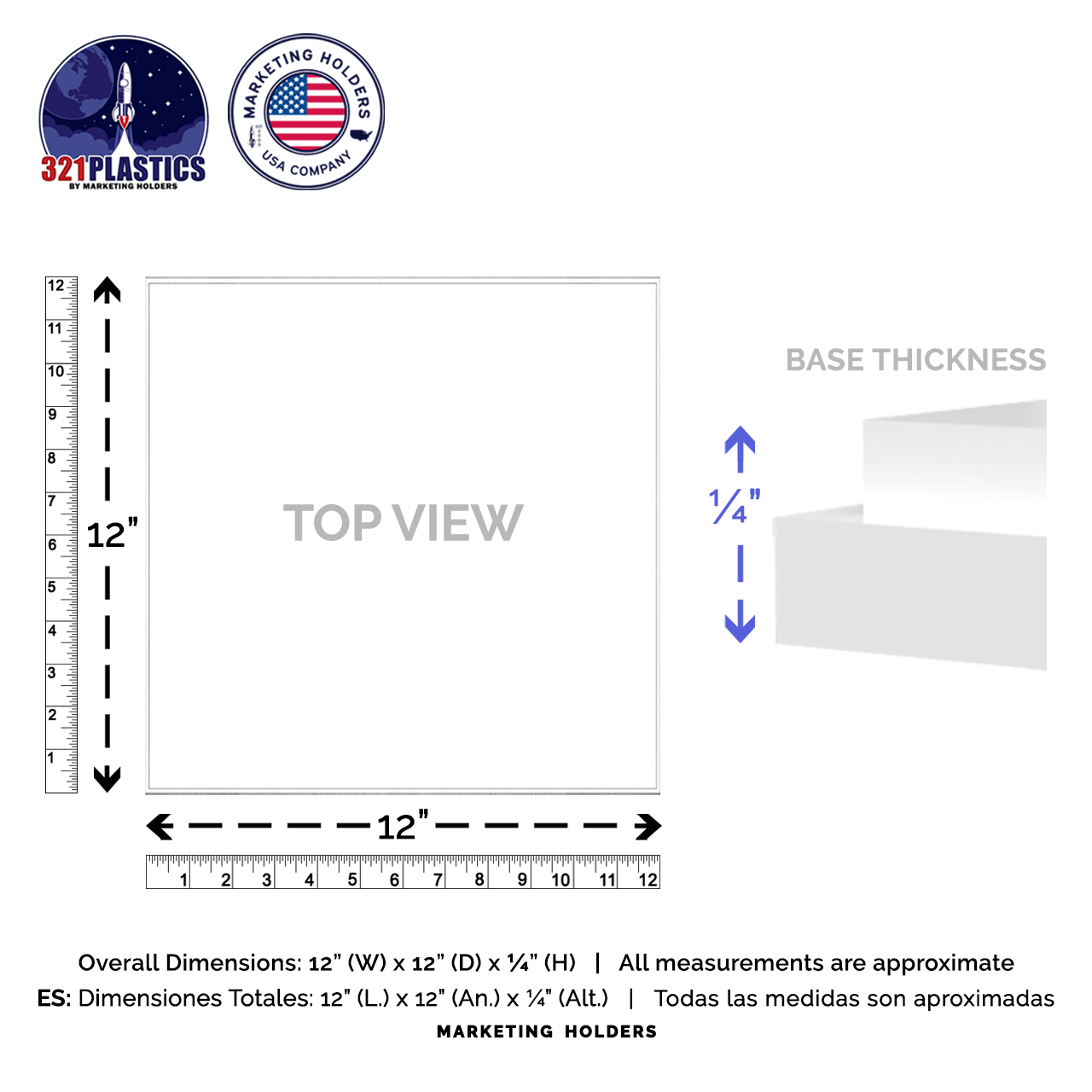 - Overall Dimensions: 12"W x 12"D