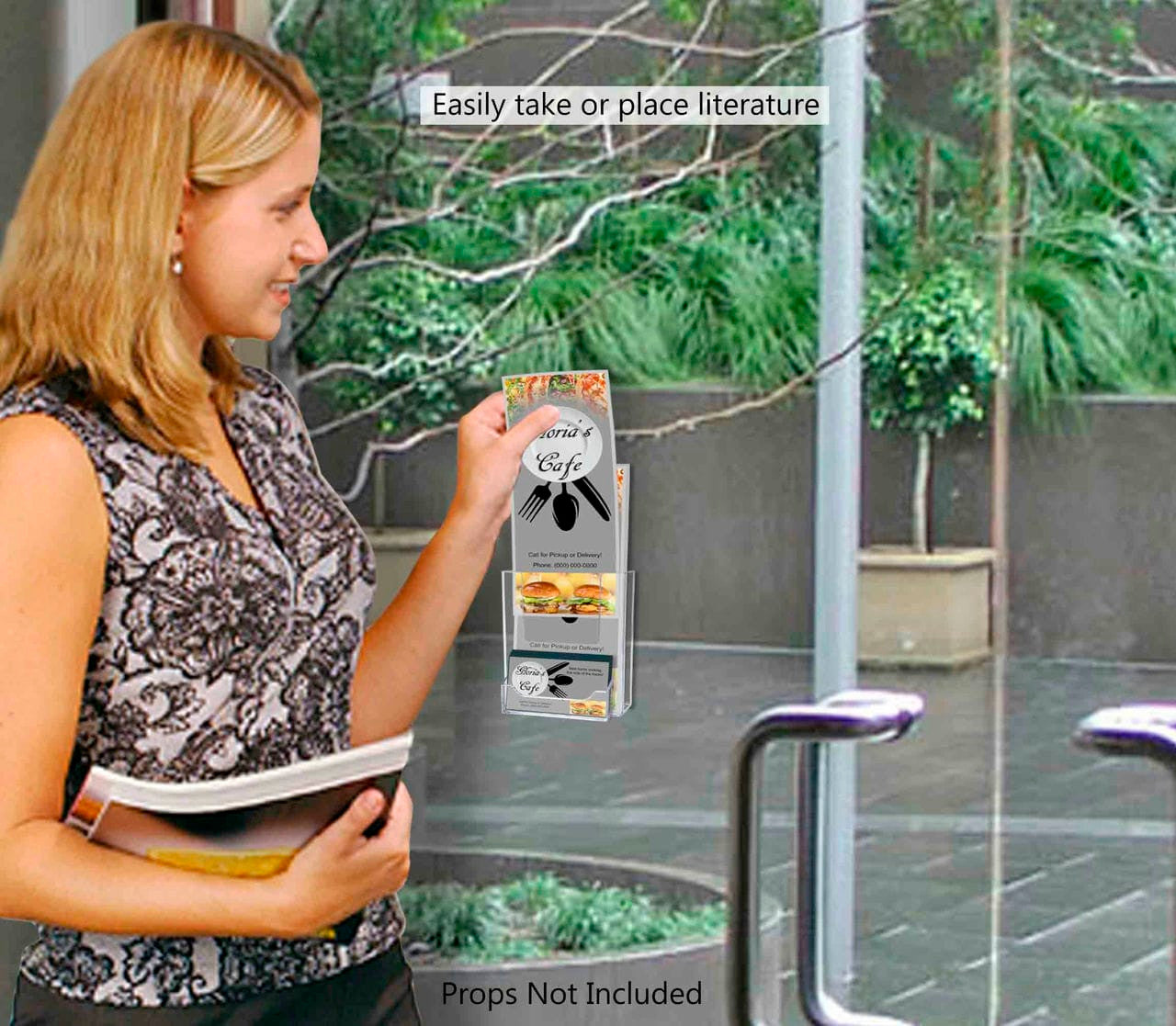 - Perfect multi pocket display solution with suction cups for trifold brochures, flyers, pamphlets, catalogs, advertisements and business cards