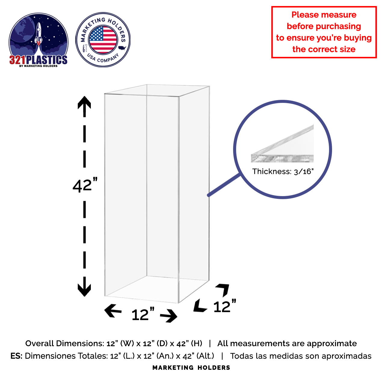 12" x 12" x 42" Tall Acrylic Retail Display Box