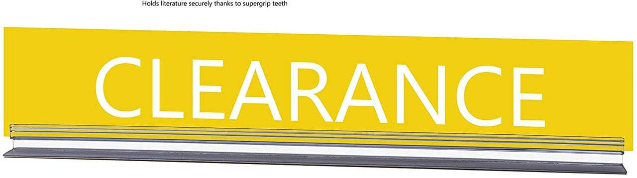 These flex pricetag gripper sign holders are perfect for displaying pricing information and food labels in a retail setting. The adhesive backer attaches to most surfaces, including store shelving. This is especially useful in retail environments. These clear PVC plastic sign holders have tooth-like grippers to keep a secure grasp on a displayed sign. The upright price tag displayers can present signage perpendicularly to a shelf to create a flag-like display. This allows users to present double-sided signs.Â