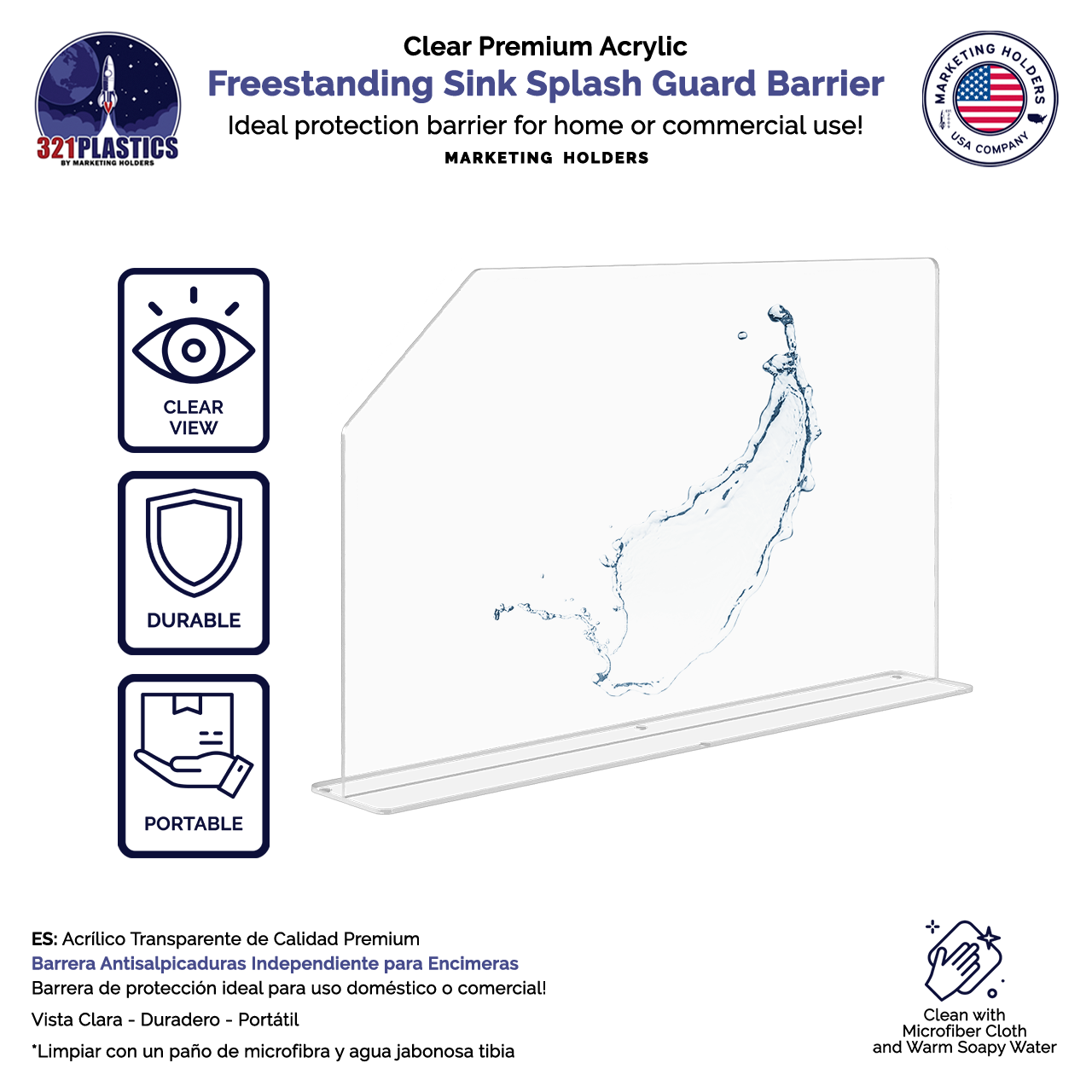 The splash guard is made of high-quality acrylic for maximum durability and shelf life.