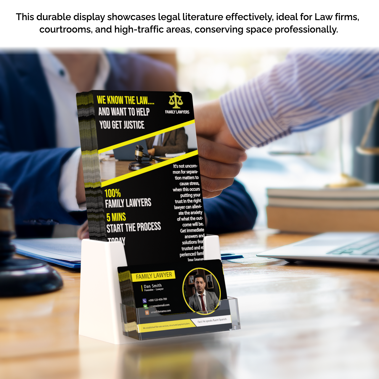 Our heavy duty advertising stands can be used on flat surfaces such as tops of a table, counter or desk near entrances and exits or reception areas so customers are prompted to take one when visiting your business. These printed media holders feature an angled-back design for optimal visibility and stability. Elegantly showcase attraction brochures and business cards while saving space and keeping areas looking professional, clutter free and organized. In addition to business cards, the acrylic caddy can also be used to display other small media like Security Gate Code Cards, Membership Cards, Appointment Cards, VIP Cards, ID Badges, Security Cards or Gift Cards.