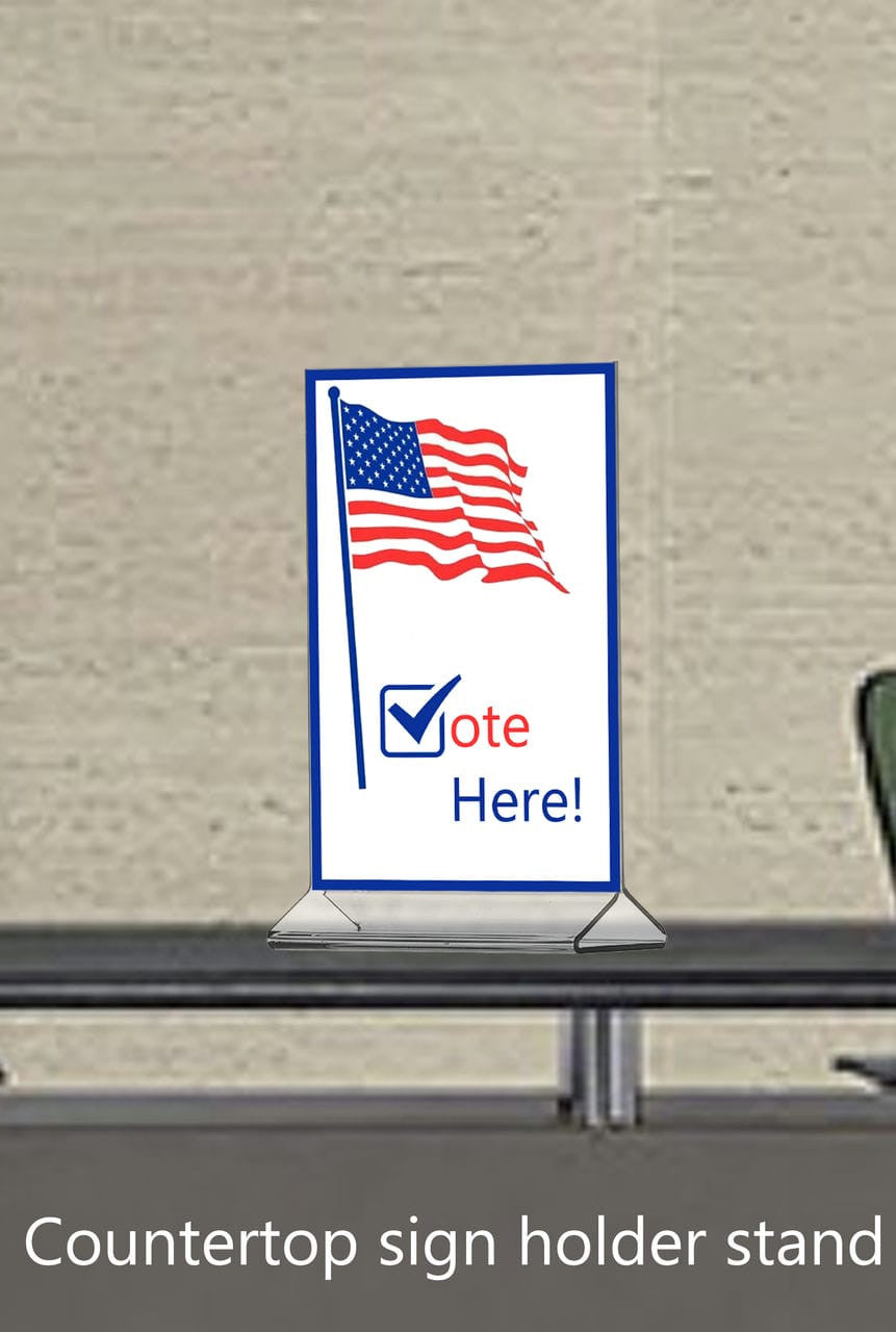 This printed material sign holder is perfect for displaying advertising, graphic images, printed media or to showcase documents that you would like to have on display in your retail shop or office. Use these tabletop holders to inform your customers or clients about hours of operation, today's specials, ads and advertisements or general informational notices. These versatile sign displays hold two images sandwiched back to back for dual sided viewing. These are lightweight and portable which means they can be placed in the reception area of any business, hotel, doctors offices or medical facilities.