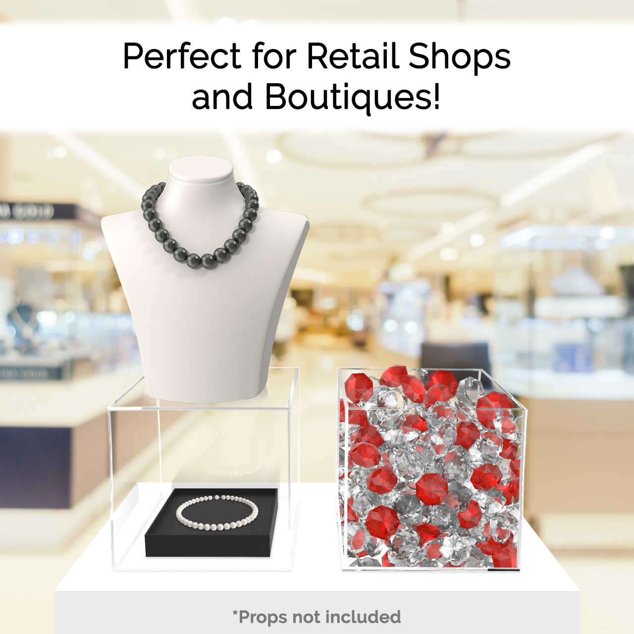 Retail stores use our acrylic boxes as risers to display jewelry for an eye popping presentation. This showcase riser provides an elegant presentation for precious collectibles, model cars, airplanes, doll collections, ornaments and parts. Hobby shops use the small bins for storing collectible toy parts, model car parts, small diecast paint pots, train sets, slot cars, figurines and glue.Â