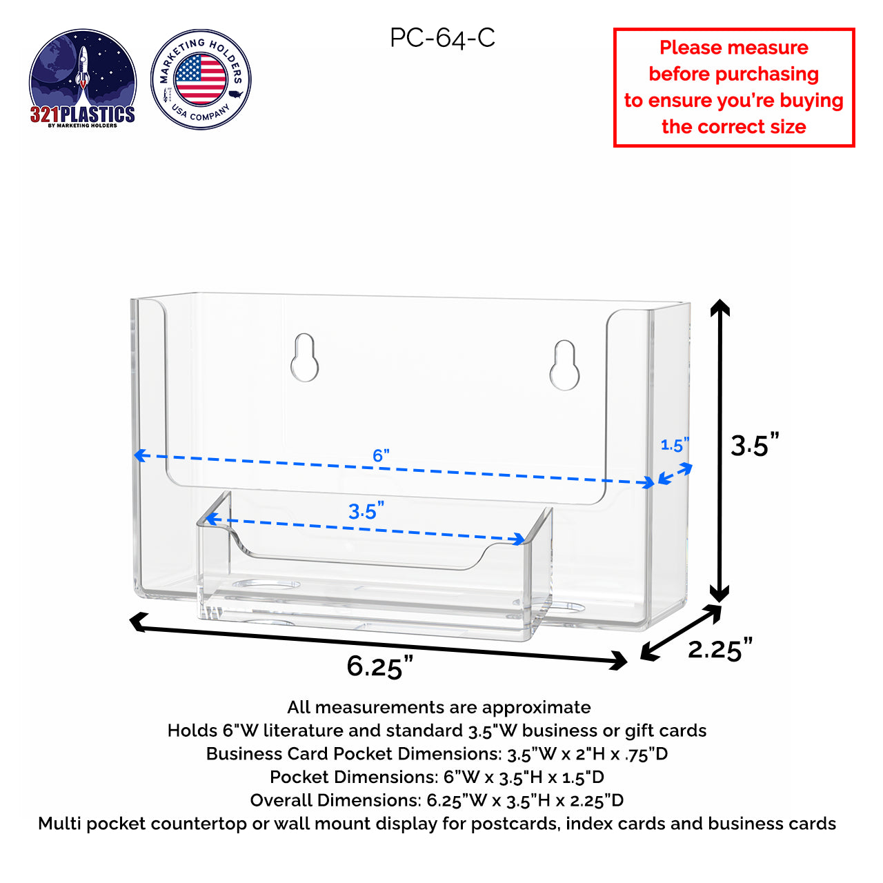 - Holds 6"W literature and standard 3.5"W business or gift cards