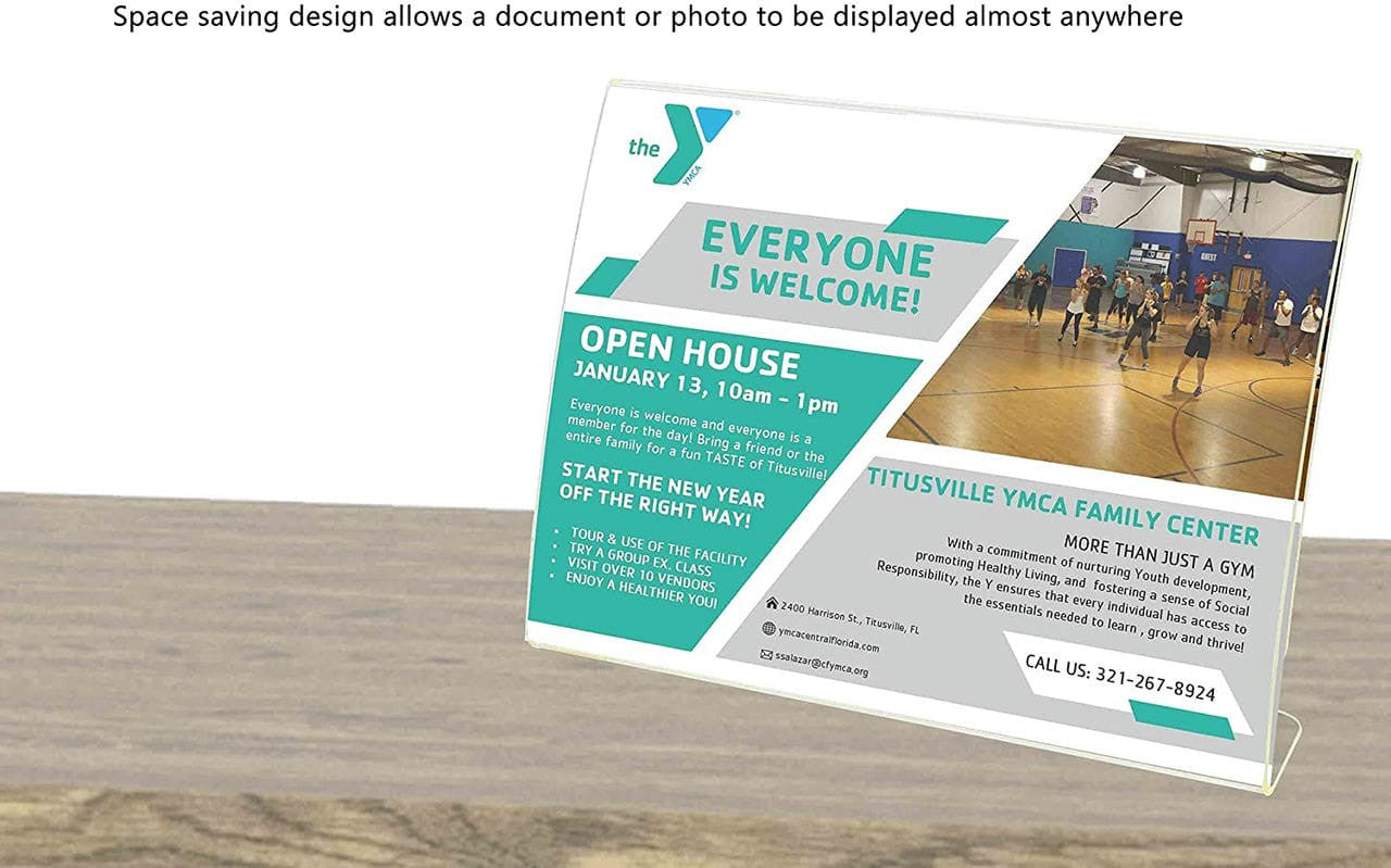 - Holds 7”W x 5”H literature.