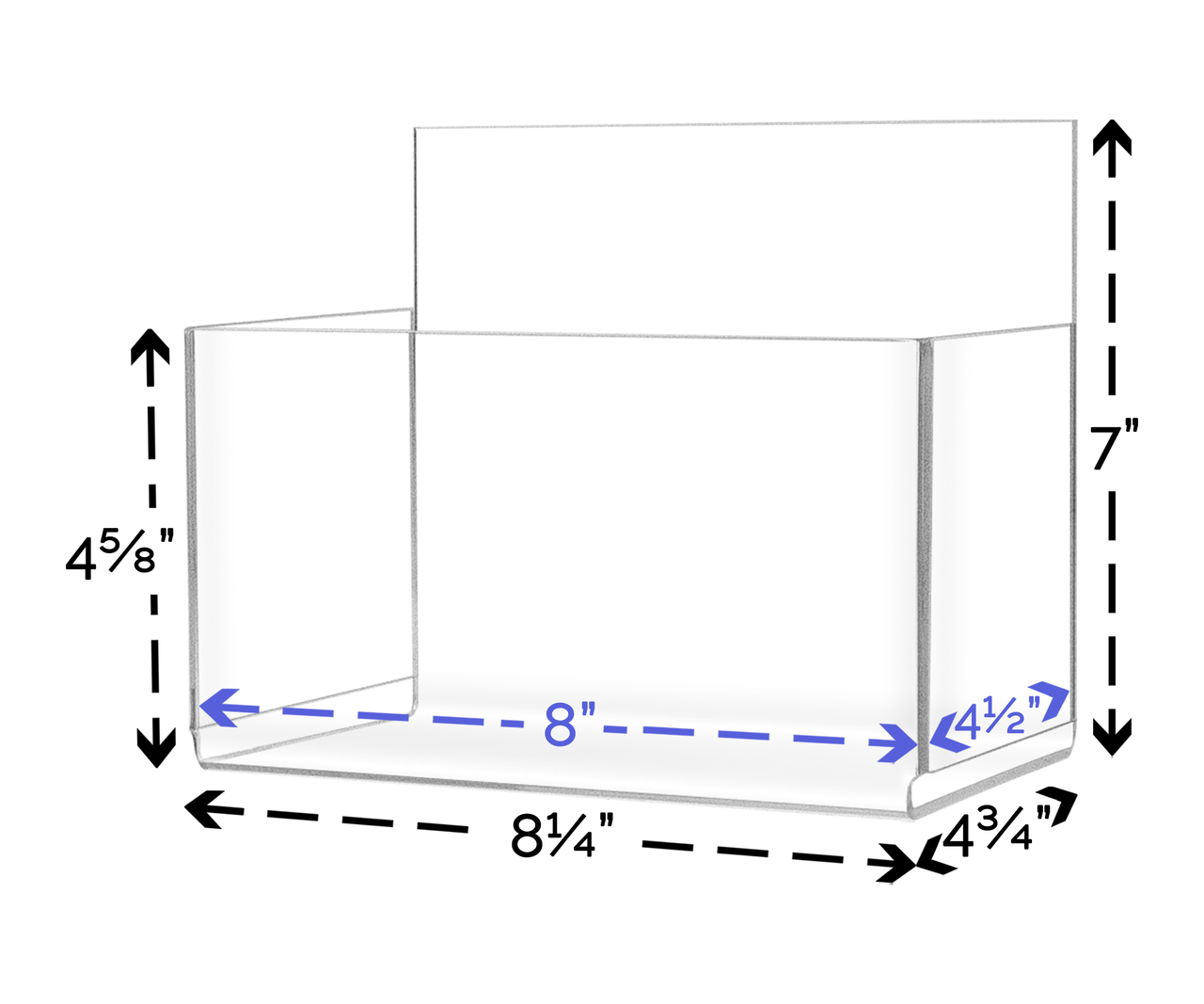 - Overall Dimensions: 8.25"W x 4.75"D x 7"H (back) 4.5"H (front)