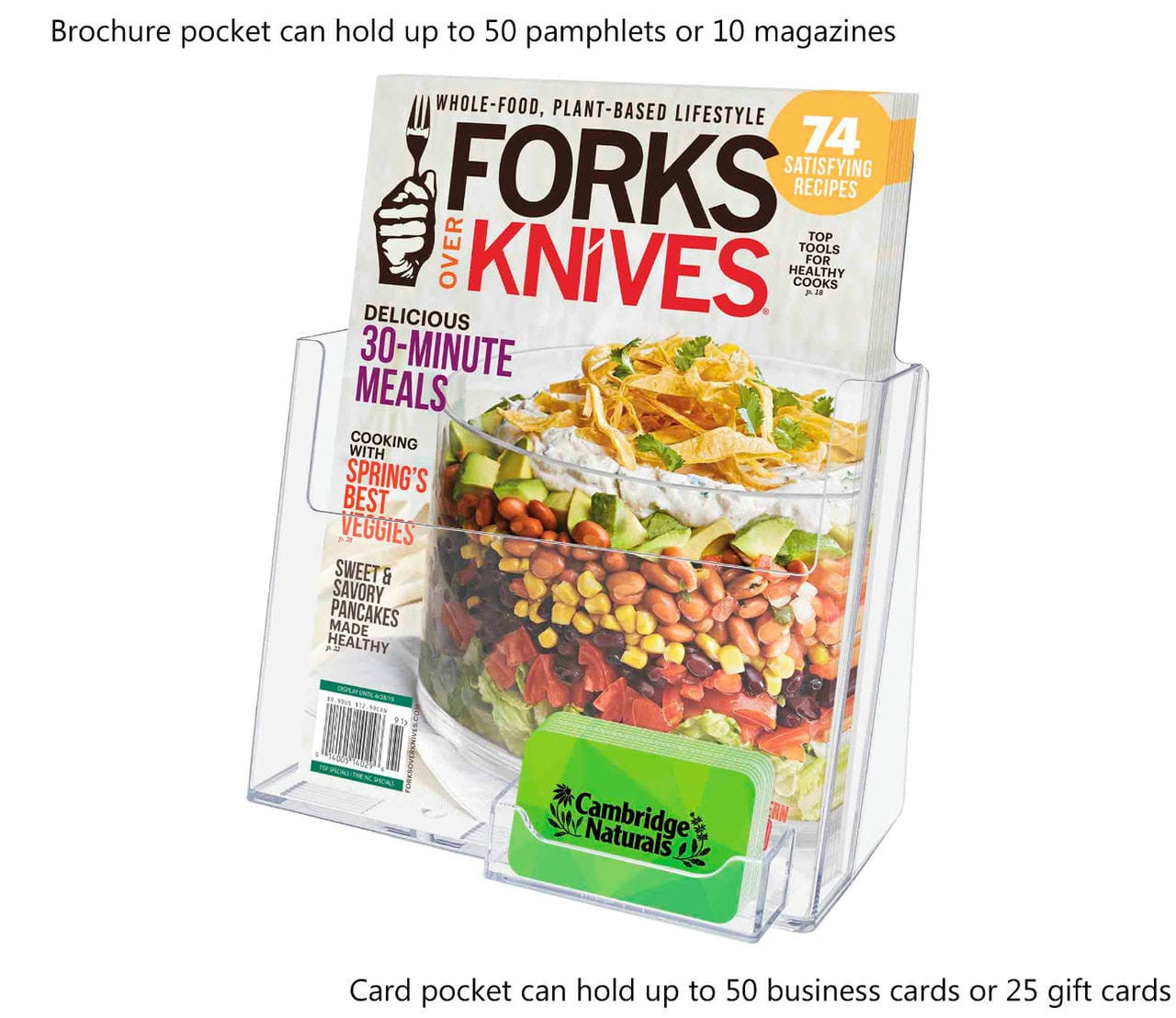 - Holds 8.5”W literature and standard 3.5"W business or gift cards