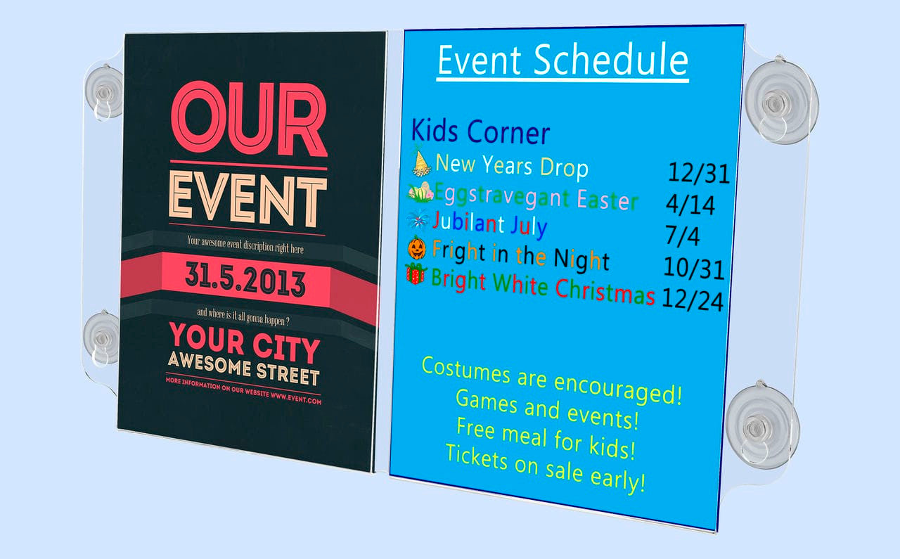 Double 8.5"W x 11"H Sign Holder for Windows with Suction Cups
