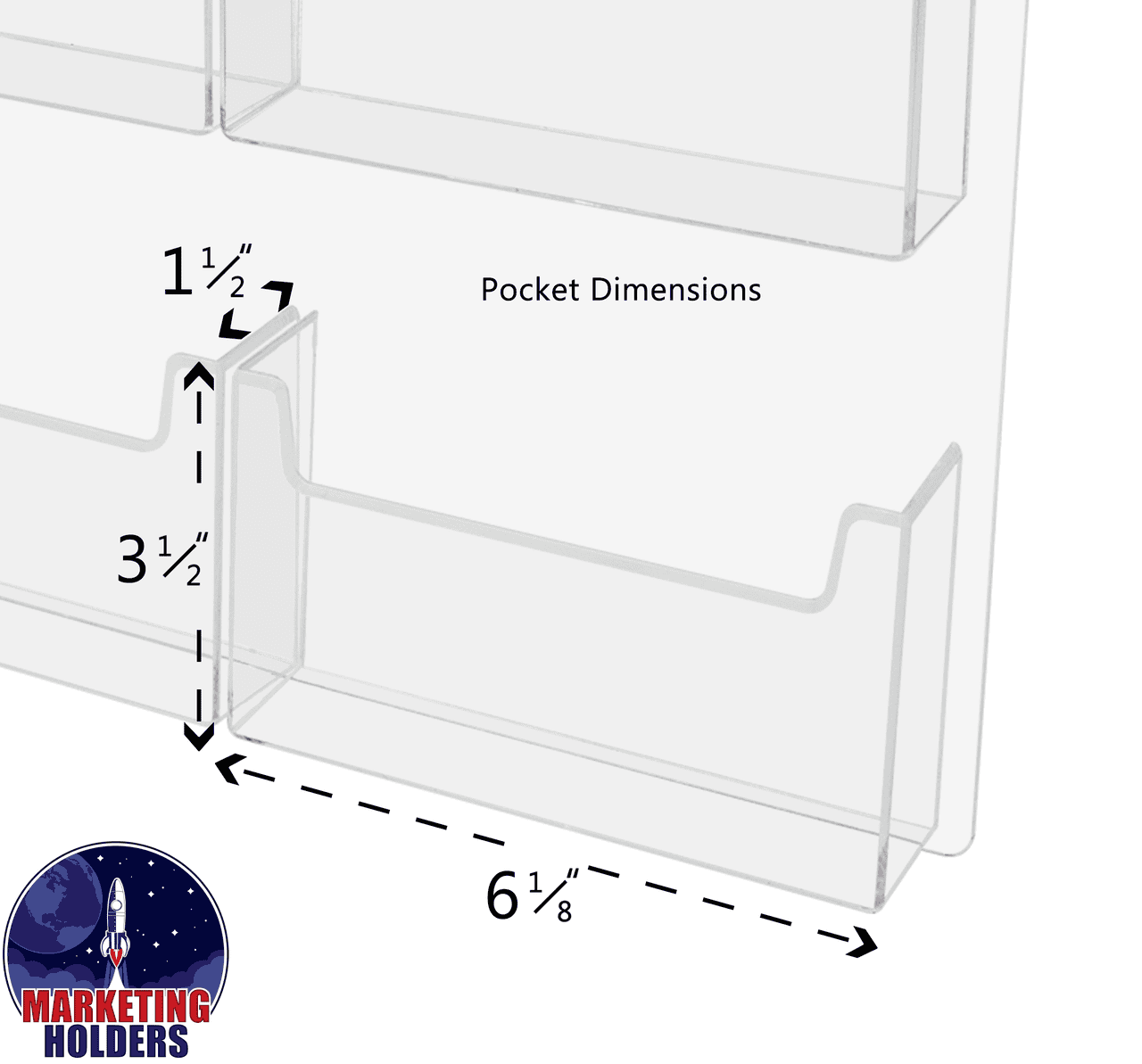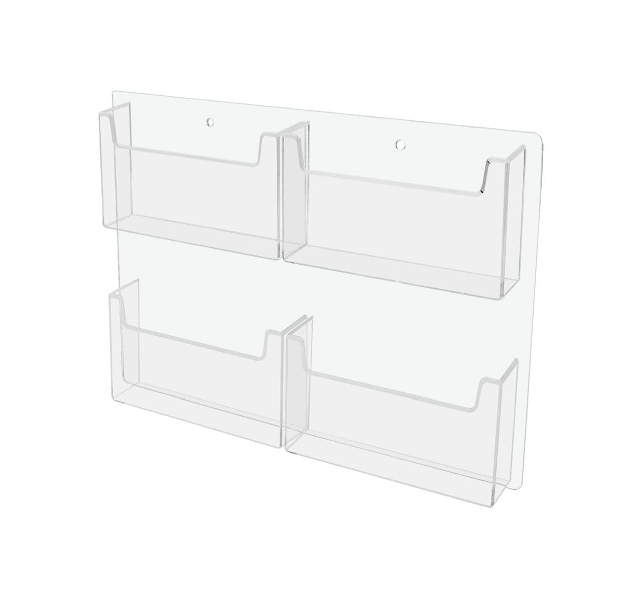 - Clear Four Pocket Wall Mount Postcard Holder with 2 Pre-drilled Holes and hanging hardware
