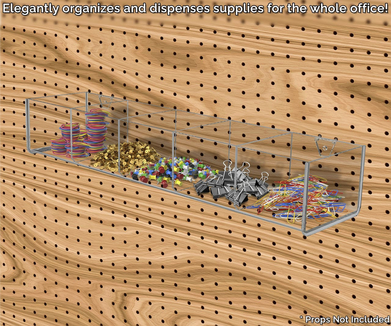 Pegboard 19.5"W Acrylic 5 Compartment Retail Product Storage Bin
