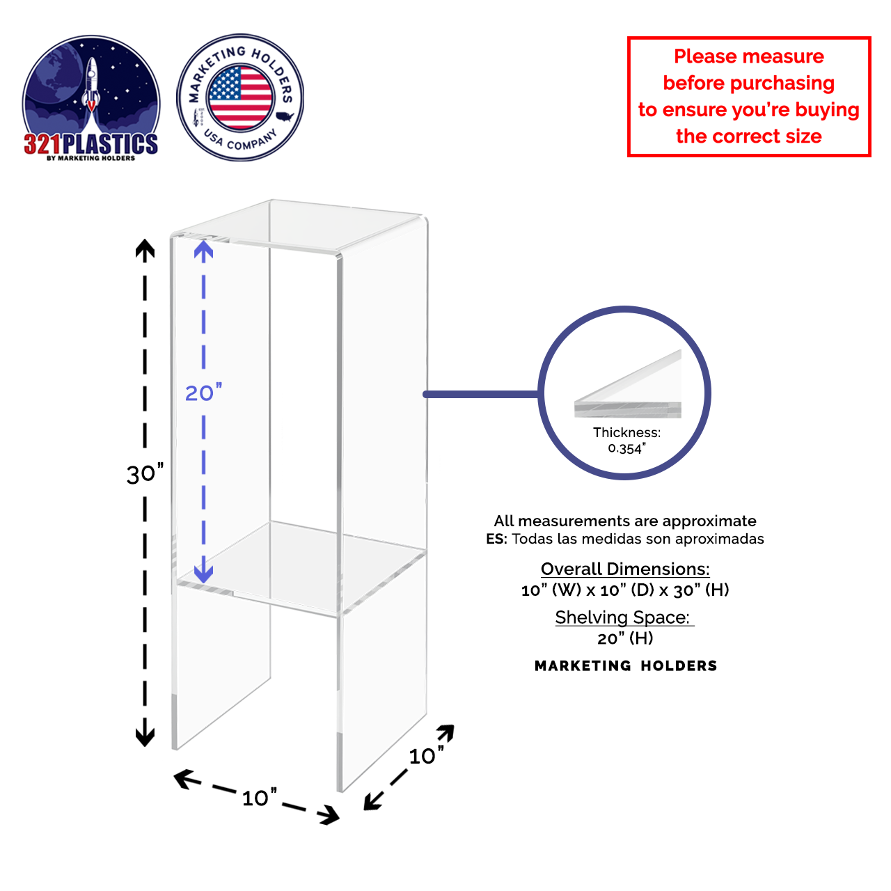- Overall Dimensions: 10"W x 10"D x 30"H