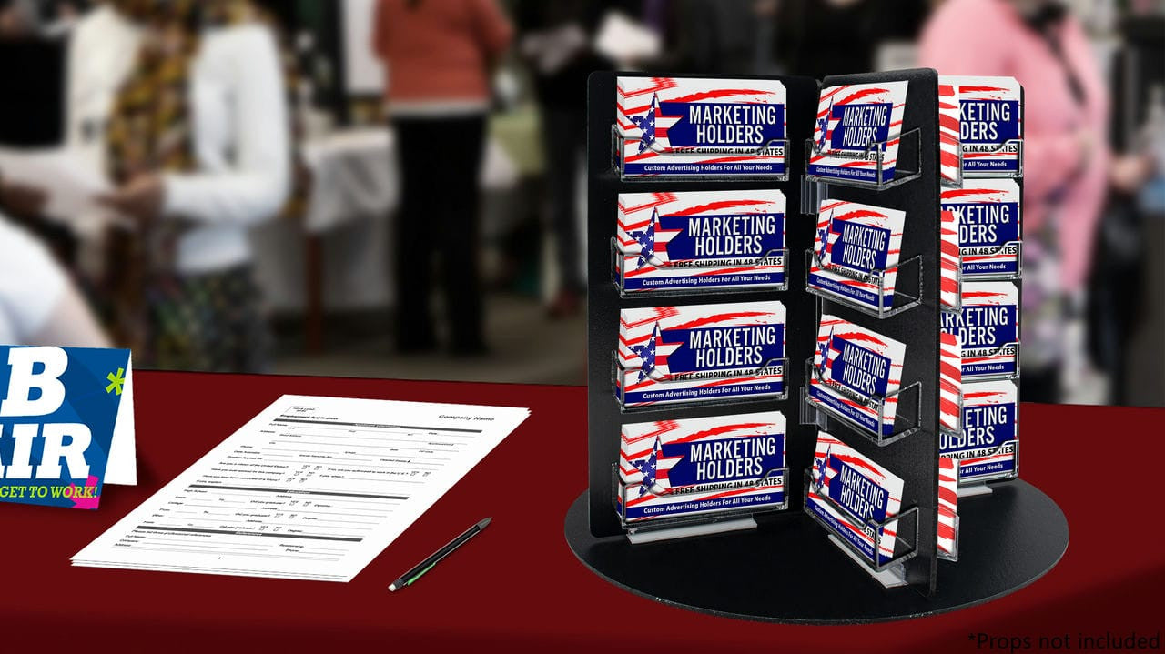 This plastic acrylic rotating display stand is perfect for entrepreneurs who need to promote their business on numerous tables or counters. The holder allows you to display your information in a clear and easily accessible manner. These are great for placement in any service business, salons, reception areas, professional office, government office and other various venues such as trade shows, flea markets or expos.