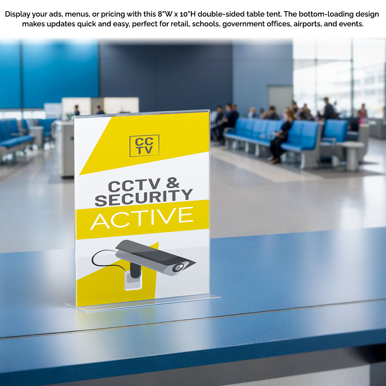 Sign Holder 8"W x 10"H Double Sided Bottom Load Table Tent