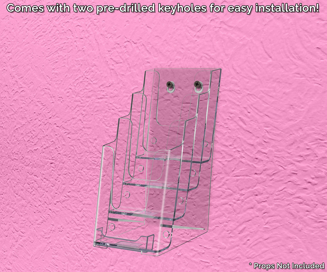 Our heavy duty advertising stands can be used on flat surfaces such as tops of a table, counter or desk near entrances and exits or reception areas so customers are prompted to take one when visiting your business. This versatile holder comes with 2 pre-drilled keyholes and is designed to easily hang on smooth surfaces. Elegantly showcase attraction brochures while saving space and keeping areas looking professional, clutter free and organized.